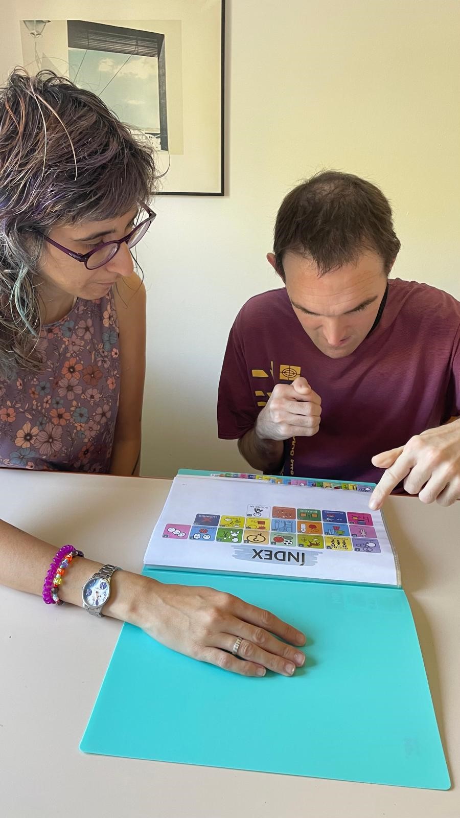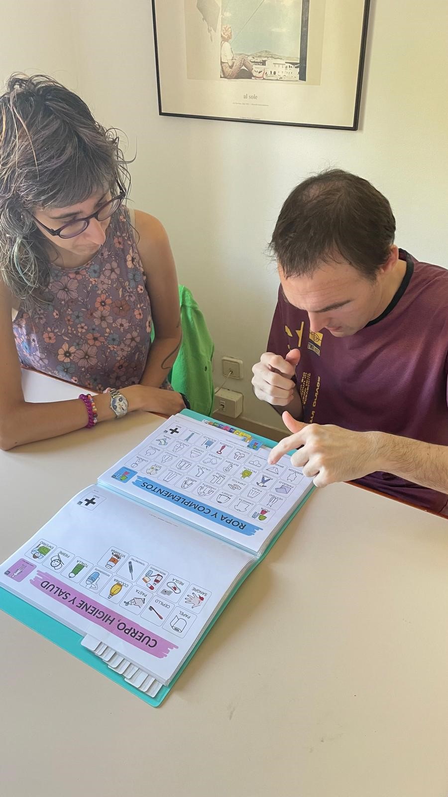 També se li va facilitar una llibreta de comunicació, que encara està descobrint i aprenent a utilitzar, però que ja forma part del seu dia a dia com un suport més.