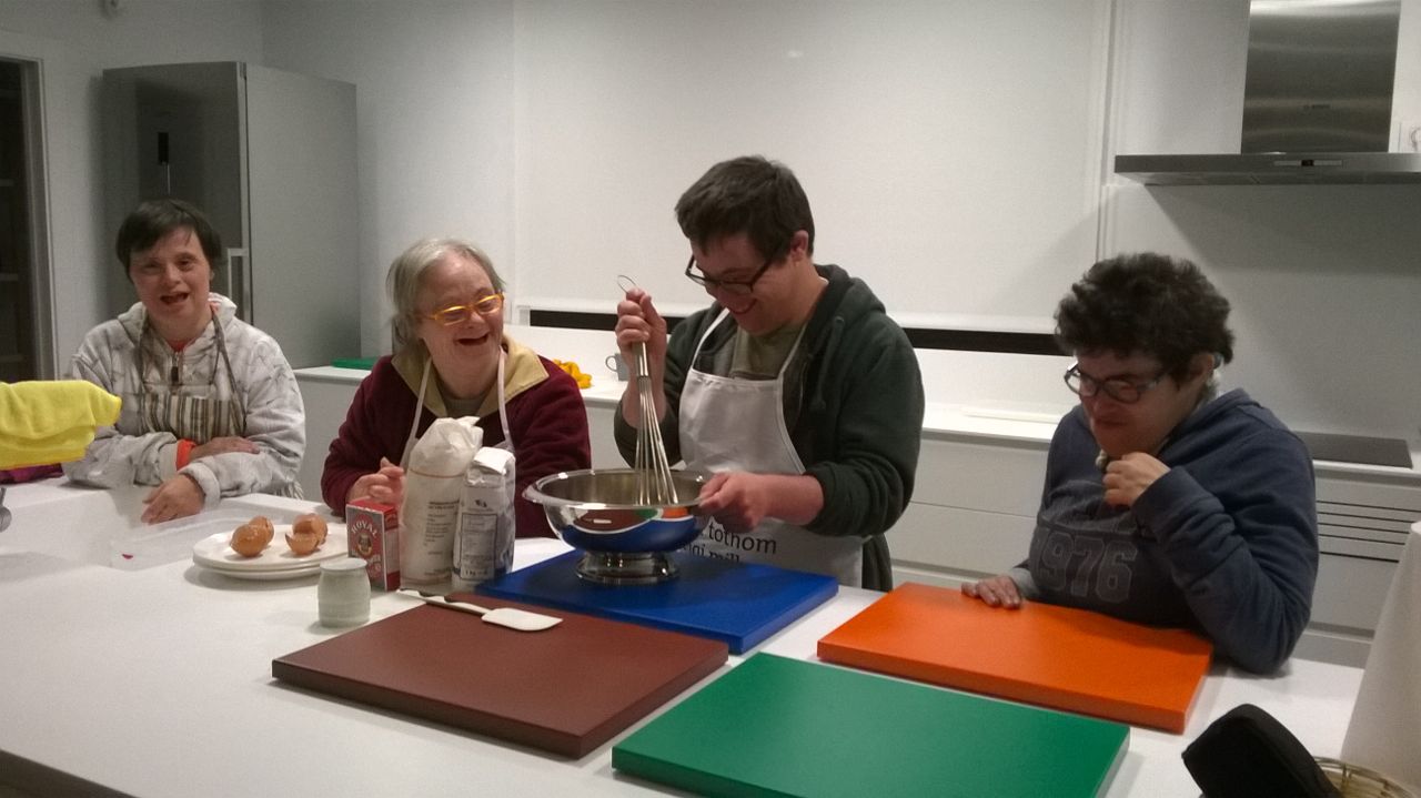 Cal dir, que la casa està molt ben comunicada i té molt a prop les àrees de comerç on fer la compra per tota l’estada. En Roger estava meravellat de veure com omplien el carro de la compra, amb ingredients per fer pizzes, per fer macarrons, per fer bikinis… anava revisant tot el material i donat la seva aprovació amb un “mmmm…”. na vegada van tornar a la casa, es va fer el sopar. L’àmplia cuina va permetre que alguns usuaris ens ajudessin a fer el menjar, col·laborant amb les monitores en tot allò que podien. El fet que la sala d’estar estigui a continuació de la cuina, permet que puguin descansar aquells usuaris que no poden participar de les tasques de cuina.